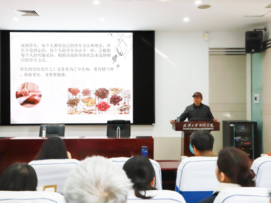 在热烈的掌声中,讲座正式拉开帷幕。李云鹏主任首先围绕“冬季中医养生保健”主题,进行了深入浅出的讲解。他结合中医经典理论,从冬季气候特点出发,详细阐述了“藏精保暖、早卧晚起、去寒就温”的养生总原则。针对教职工普遍关注的如何缓解疲劳、增强免疫力及关节不适等问题,李主任分享了诸如食疗调理、穴位按摩、适度运动等多种实用且易于操作的养生方法。其讲解引经据典、贴近生活,现场听众频频点头,认真记录。