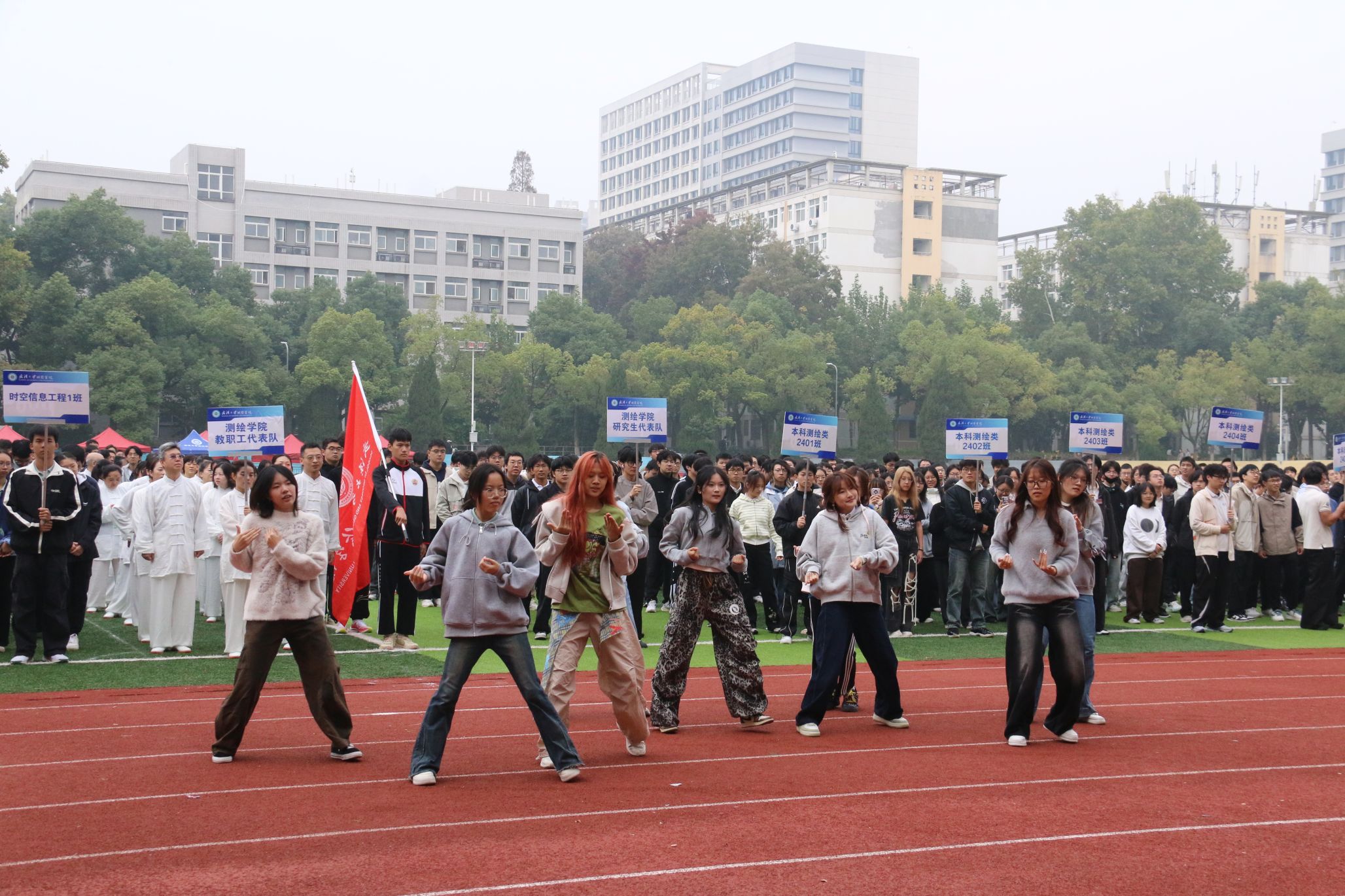 开幕式结束后,教职工展示了八段锦健身气功,2024、2025级本科生进行了广播体操展演。