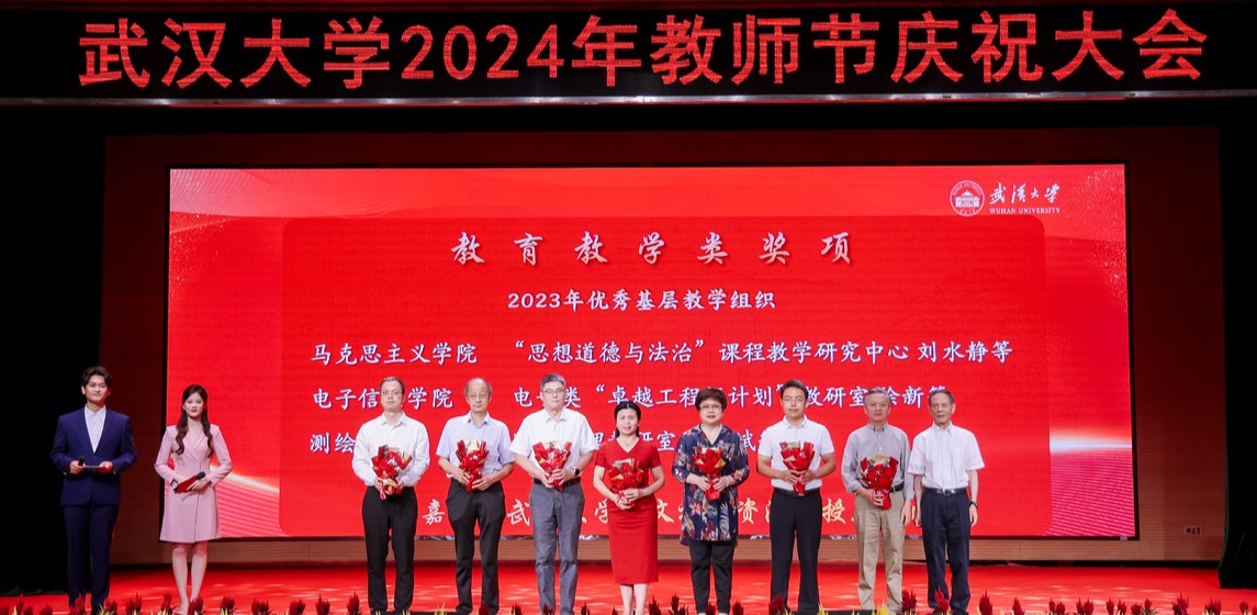 为庆祝第39个教师节,9月8日上午,武汉大学在图书馆报告厅隆重举行教师节庆祝大会,会议以“躬耕教坛,强国有我”为庆祝主题,表彰一批优秀教师,共同庆祝教师节。此次庆祝大会以线上线下相结合的方式进行,我院组织教职工观看了大会现场直播。会上,我院2个教学团队、1个科研团队和3位优秀教师分别受到表彰。其中,姚宜斌教授主持的“面向地理信息强国战略的测绘类专业新工科建设与实践”项目荣获2022年高等教育(本科)国家级教学成果奖二等奖;...