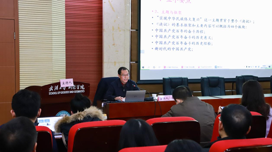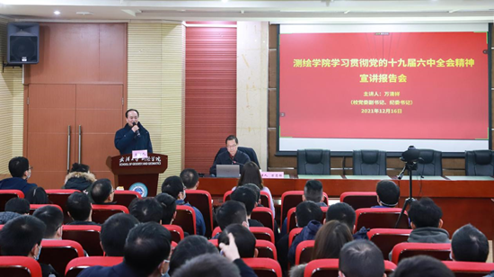 12月16日下午,武汉大学党委副书记、纪委书记万清祥教授以《坚守初心 再创伟业——党的十九届六中全会精神学习暨党史学习教育》为题,为我院师生作党的十九届六中全会精神专题辅导报告。学院全体教职工、学生党员骨干、离退休教职工党员代表参与会议,2020级和2021级全体本科生线上观看了此次报告会。会议由学院党委书记晏金柱主持。