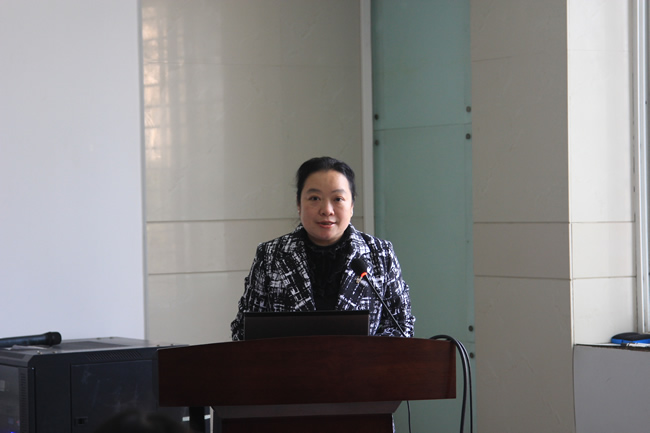 陈蓓致辞。她首先对此次会议召开表示祝贺,对学院在推进教代会和工会建设中所作出的贡献表示衷心感谢。她希望学院进一步加强对教代会的支持和建设,全面推进学校依法治校和改革发展。