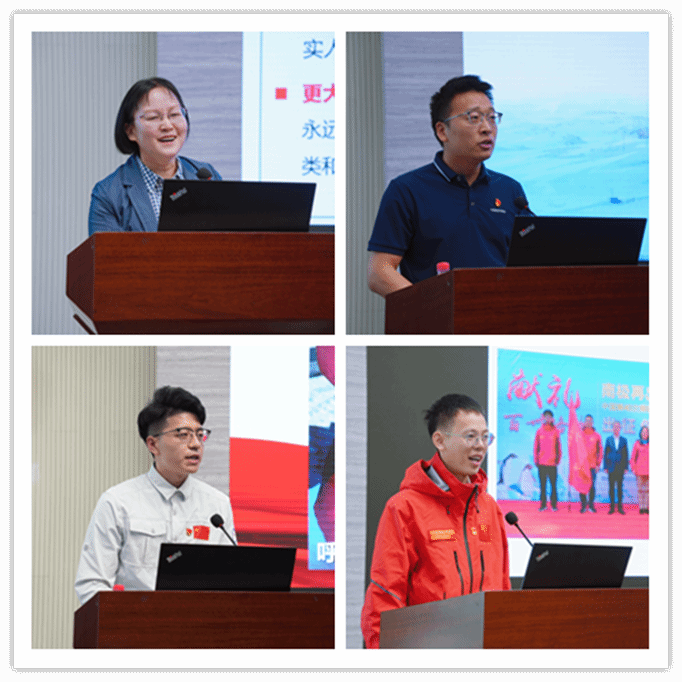 法学院教师代表黄志雄和测绘学院学生代表朱圣鸿发表感言。黄志雄老师鼓励大家以南极科考队员为榜样,勇于探索科学前沿。朱圣鸿同学分享了南极科考对青年学生成长的重要意义,期待赴南极圆科考梦。