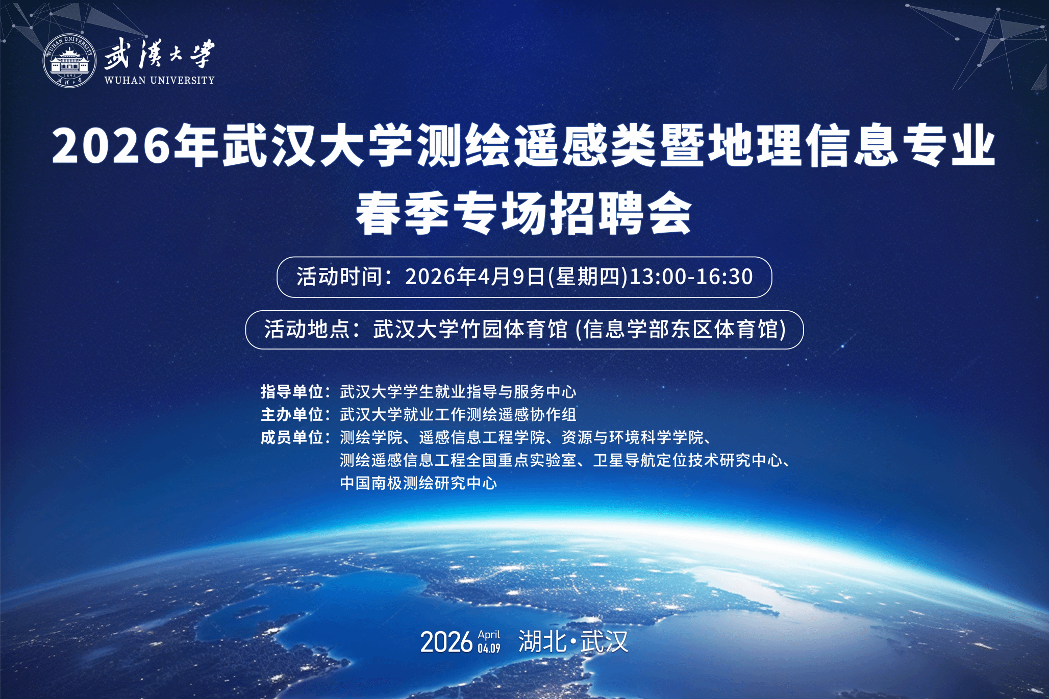 本次专场招聘会在武汉大学学生就业指导与服务中心的悉心指导和大力支持下,由测绘遥感协作组主办,测绘学院、遥感信息工程学院、资源与环境科学学院、测绘遥感信息工程全国重点实验室等单位共同参与。聚焦测绘遥感、地理信息领域核心人才需求,搭建校企精准对接的桥梁,为学生提供优质就业平台,为行业发展注入新鲜血液。
