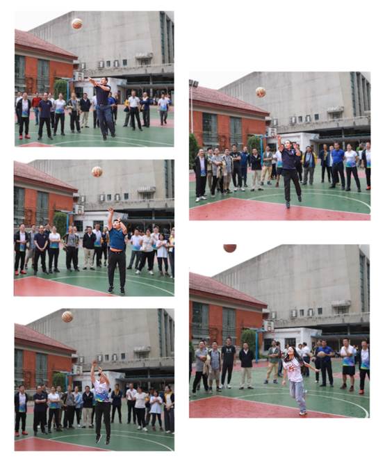 随后天空飘起了小雨,但同学的热情不减,单腿火车跑、风火轮、六人七足,八字跳绳等趣味项目,同学们齐心协力,团结拼搏!田径场另一边的篮球场上,学院教职员工们也在跳长绳、定点投篮、拾贝、足球射门等学院传统趣味项目比赛中展开激烈比拼,与同学们共同享受着运动带来的欢乐。