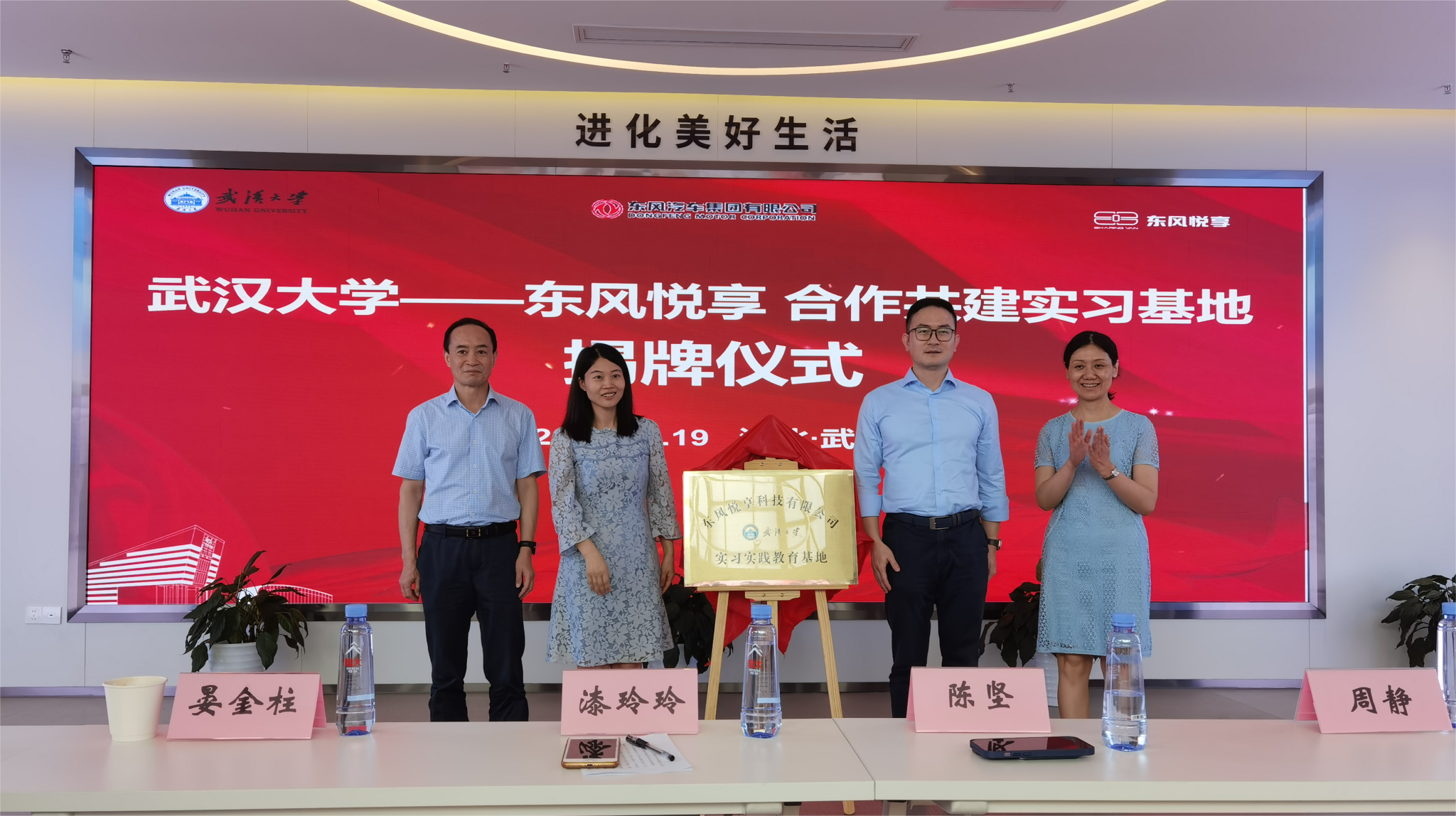 6月19日,武汉大学与东风悦享科技有限公司举行实习实践教育基地授牌仪式。东风汽车集团人力资源部规划与人才发展分部副经理陈坚,东风悦享科技有限公司首席运营官周静、首席技术官曹恺,学校本科生院教务处副处长漆玲玲、测绘学院党委书记晏金柱等代表出席了授牌仪式。
